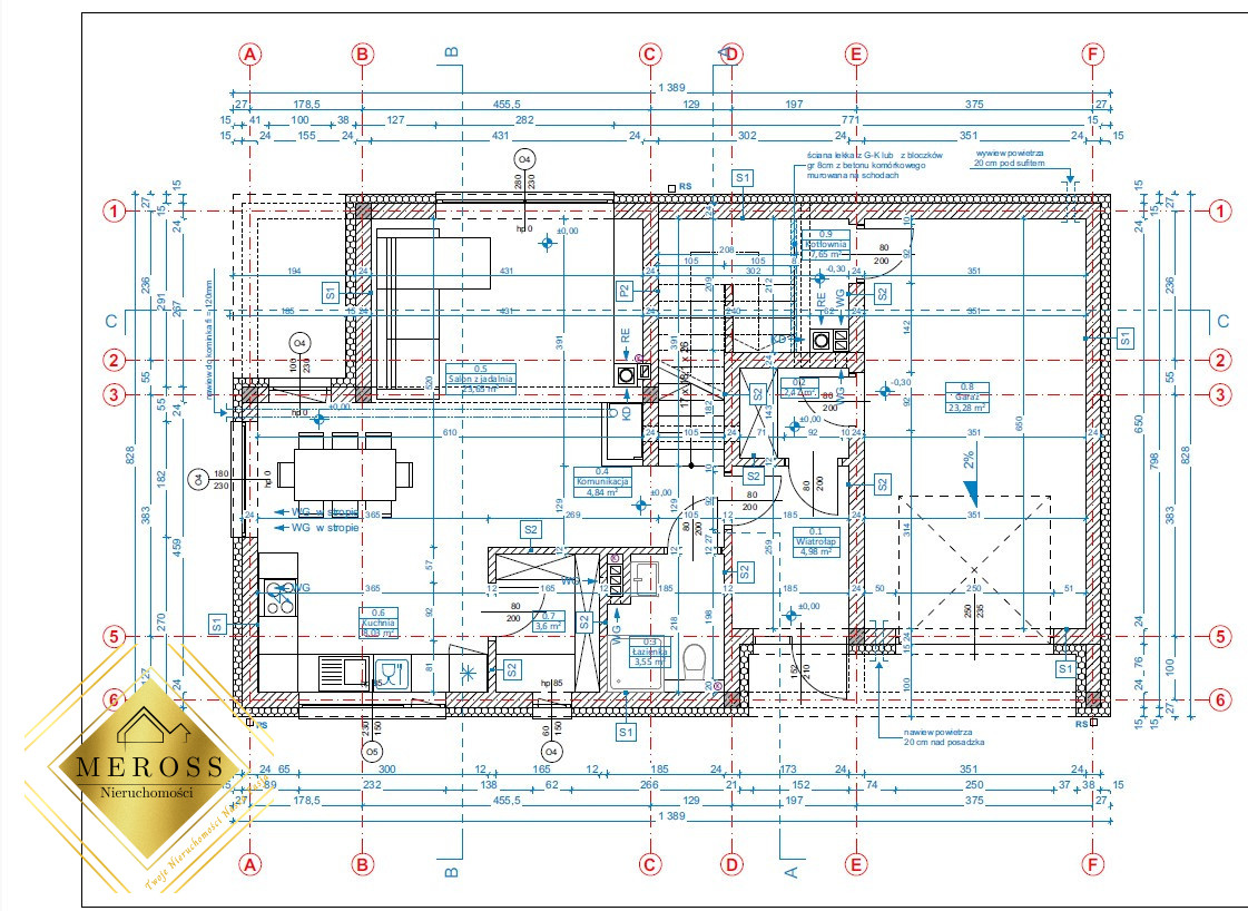 Parter: wiatrołap, salon z jadalnią, kuchnia, spiżarnia, łazienka, garderoba, kotłownia, garaż