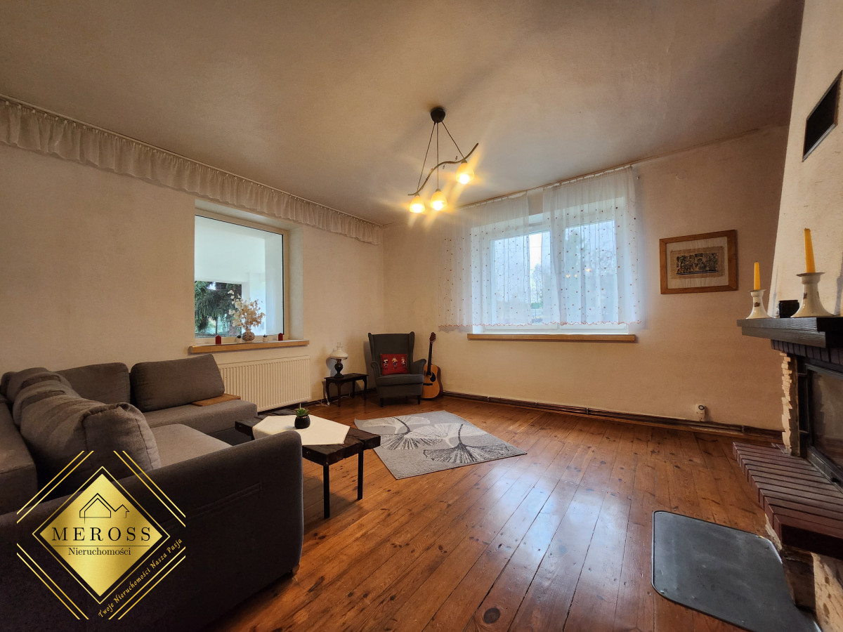 Parter: przestronny salon z kominkiem, pokój, łazienka, wiatrołap, garderoba