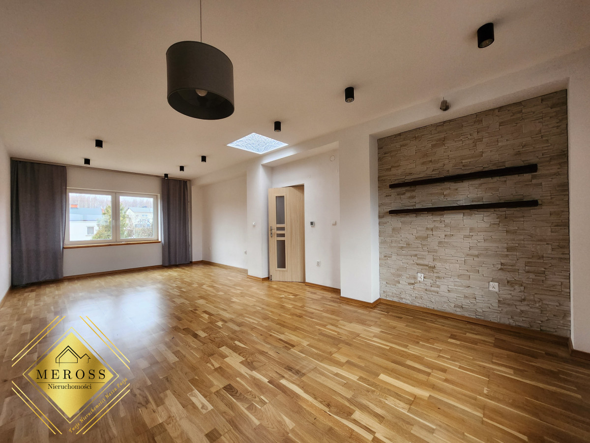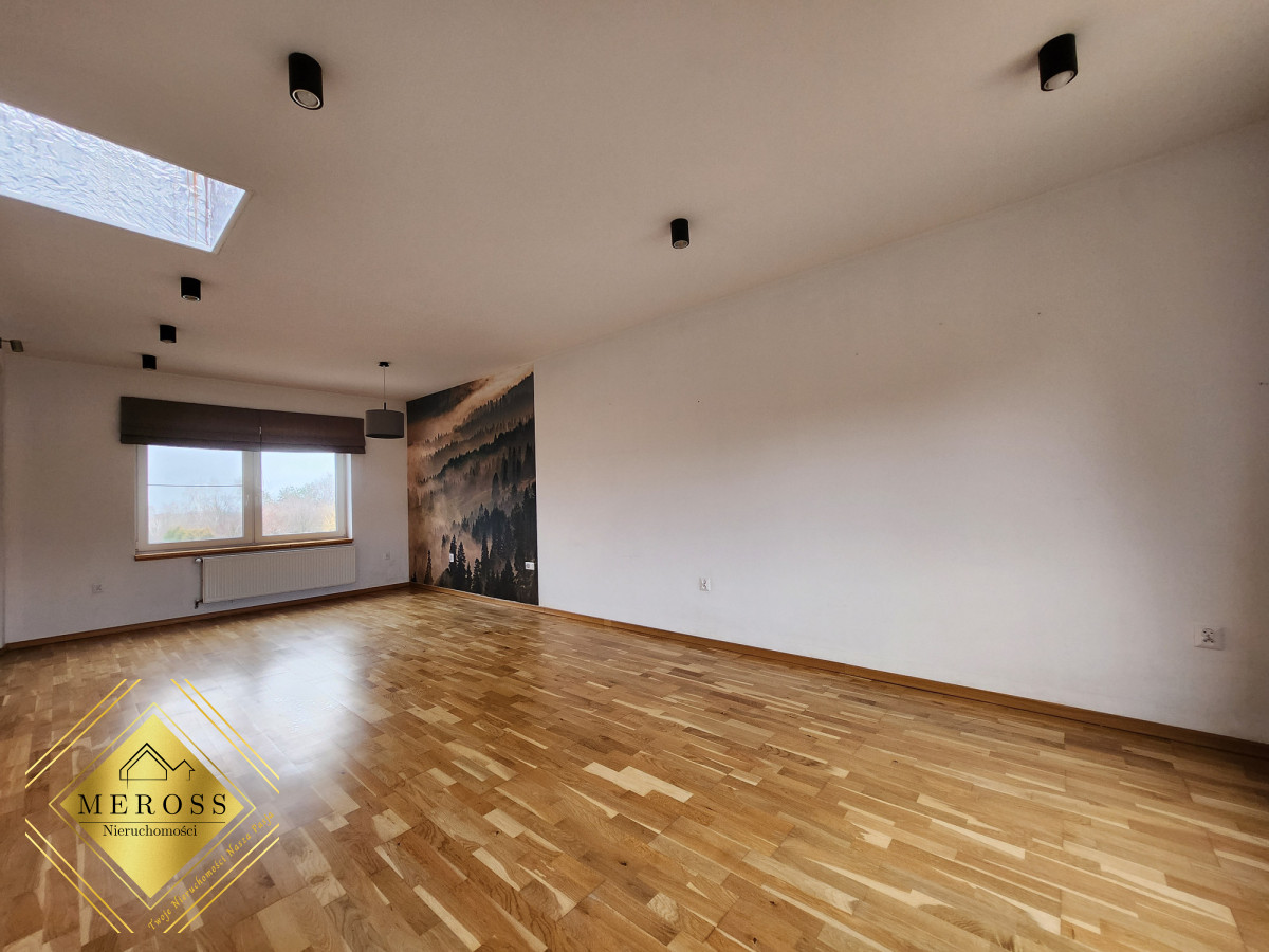 Piętro: trzy duże i jeden mały pokoój, łazienka, kuchnia oraz otwarty salon