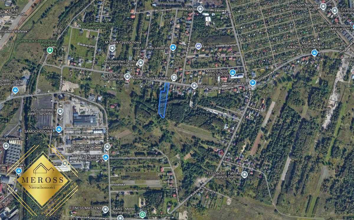 Biuro MEROSS Nieruchomości prezentuje do sprzedaży działkę o powierzchni łącznej 6186 m2 w Częstochowie, w dzielnicy Błeszno.