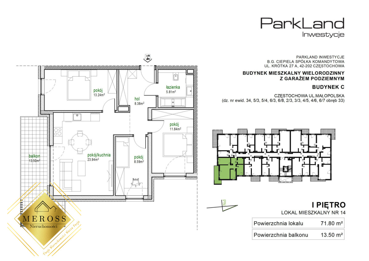 MEROSS Nieruchomości & ParkLand Inwestycjeprzedstawia do sprzedaży mieszkanie