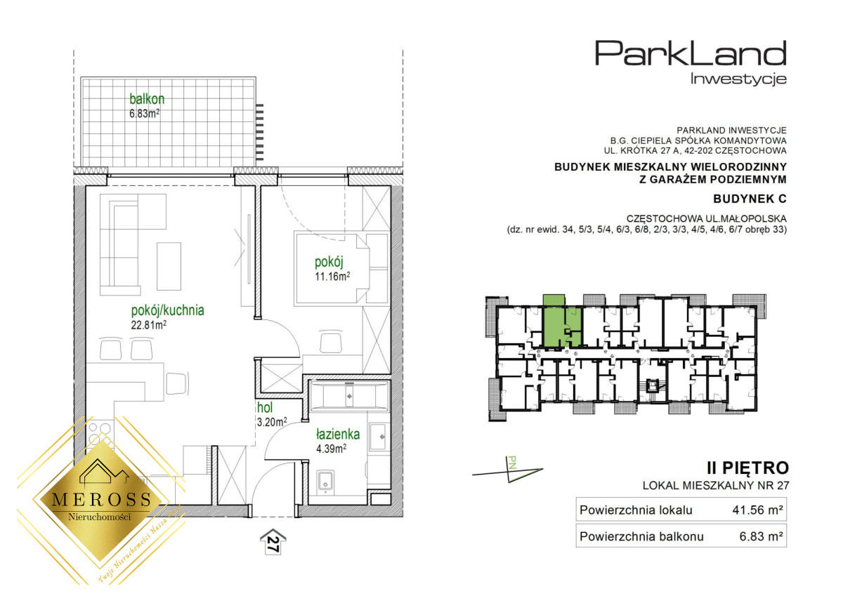 MEROSS Nieruchomości & ParkLand Inwestycjeprzedstawia do sprzedaży mieszkanie