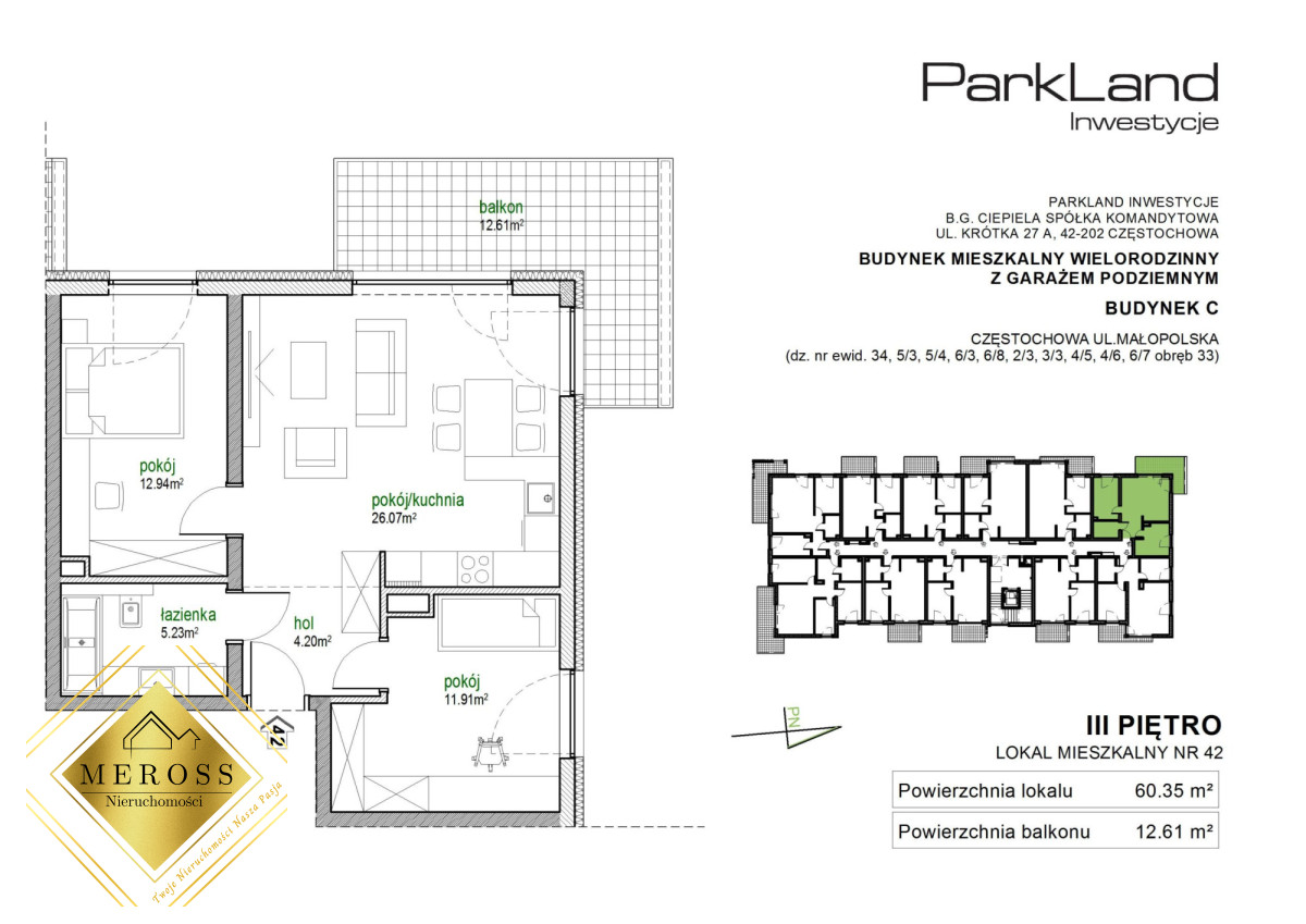 MEROSS Nieruchomości & ParkLand Inwestycjeprzedstawia do sprzedaży mieszkanie