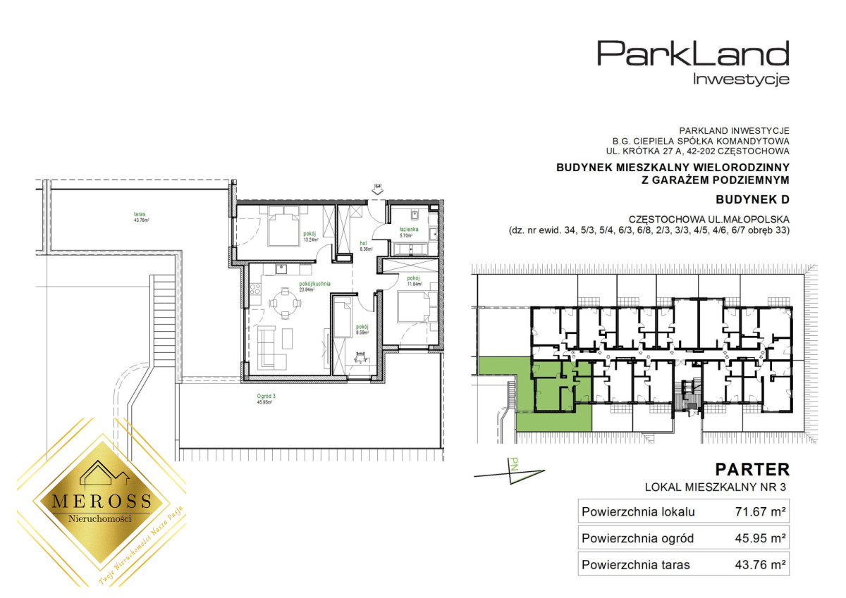 MEROSS Nieruchomości & ParkLand Inwestycjeprzedstawia do sprzedaży mieszkanie