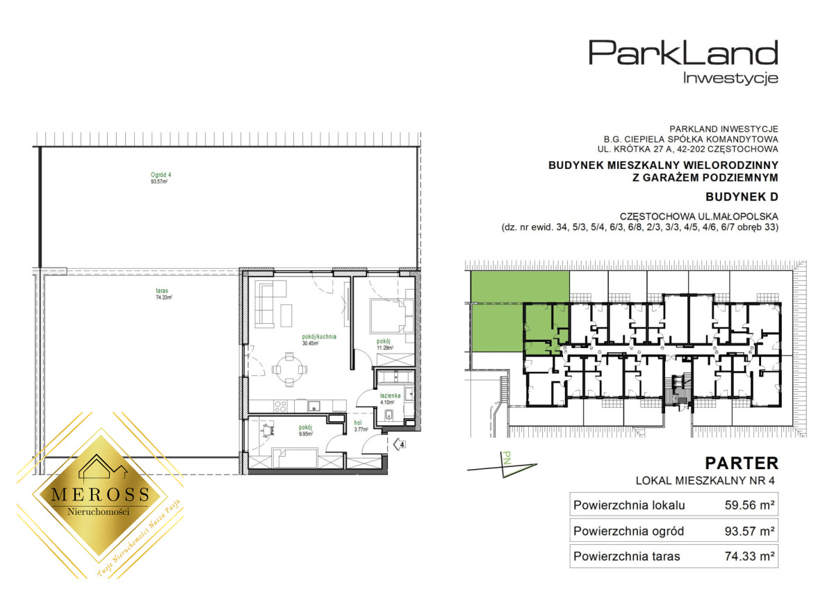 MEROSS Nieruchomości & ParkLand Inwestycjeprzedstawia do sprzedaży mieszkanie