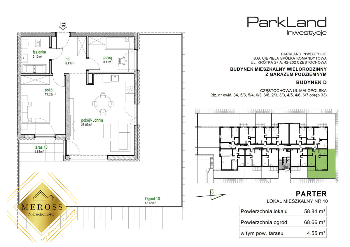MEROSS Nieruchomości & ParkLand Inwestycjeprzedstawia do sprzedaży mieszkanie
