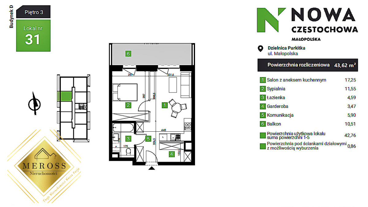 MEROSS Nieruchomości & Nowa Deweloper przedstawia do sprzedaży mieszkanie zlokalizowane