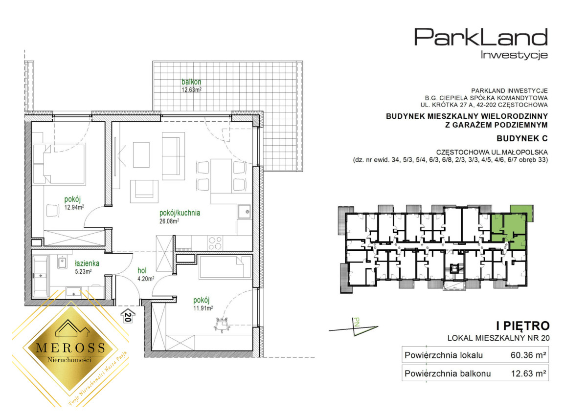MEROSS Nieruchomości & ParkLand Inwestycjeprzedstawia do sprzedaży mieszkanie
