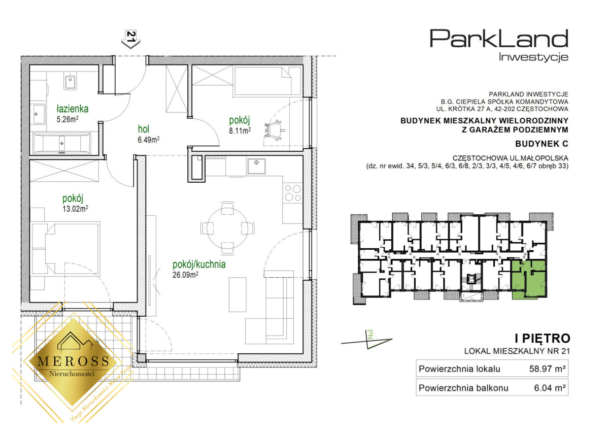 MEROSS Nieruchomości & ParkLand Inwestycjeprzedstawia do sprzedaży mieszkanie