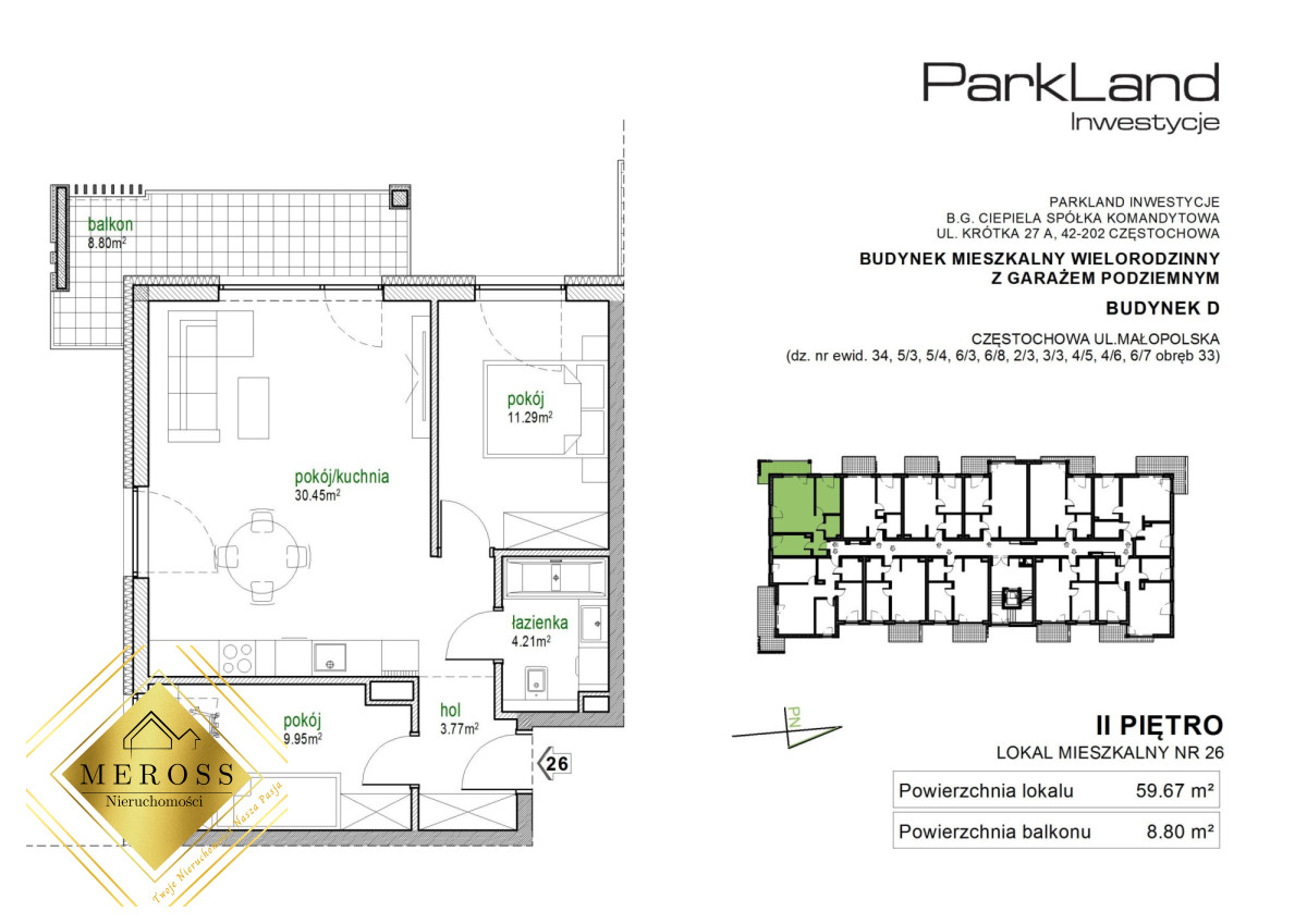 MEROSS Nieruchomości & ParkLand Inwestycjeprzedstawia do sprzedaży mieszkanie