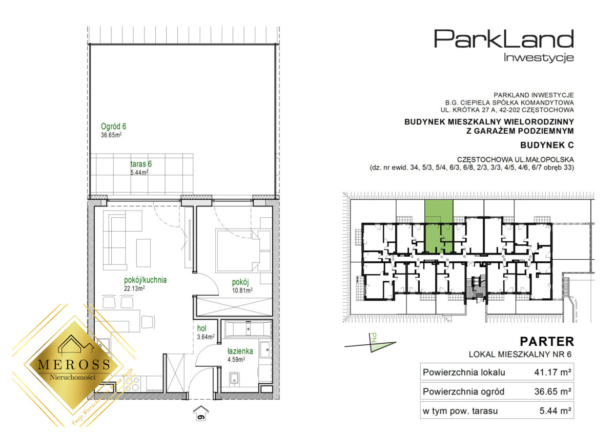 MEROSS Nieruchomości & ParkLand Inwestycjeprzedstawia do sprzedaży mieszkanie
