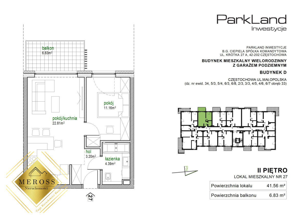 MEROSS Nieruchomości & ParkLand Inwestycjeprzedstawia do sprzedaży mieszkanie