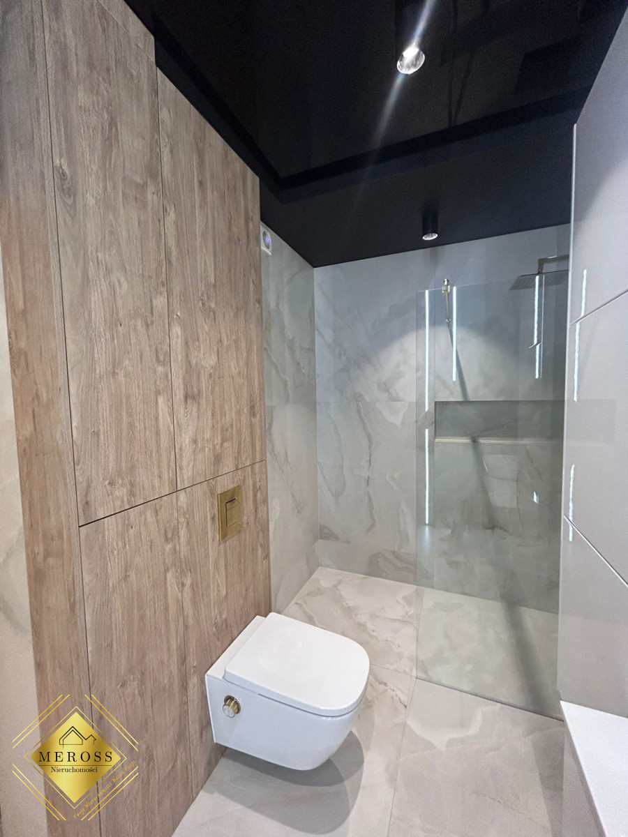 Łazienka: płytki, prysznic, wielofunkcyjna toaleta
