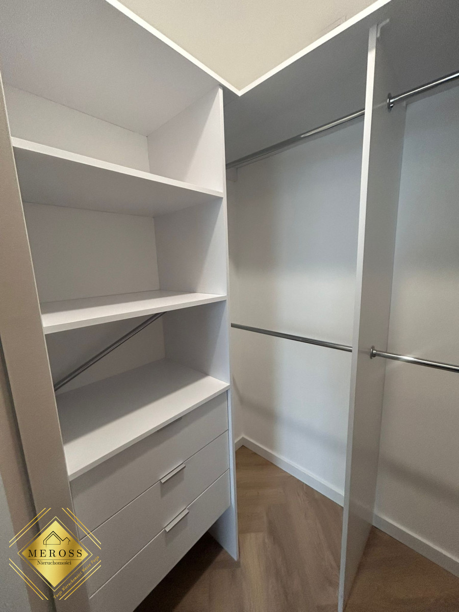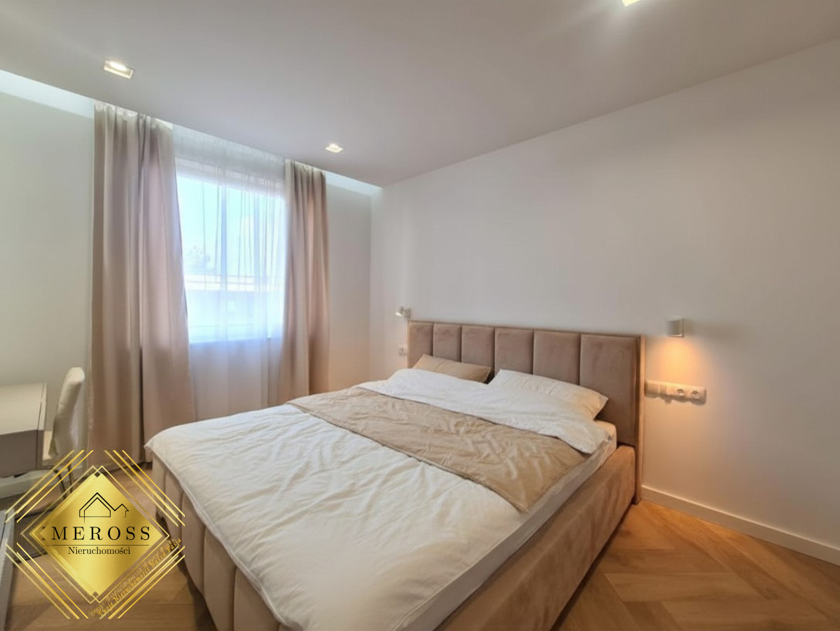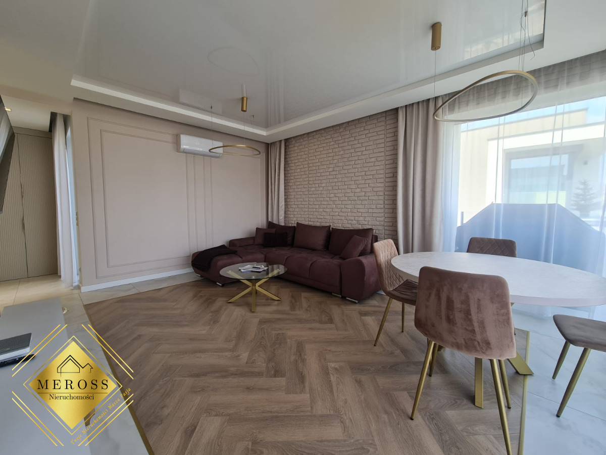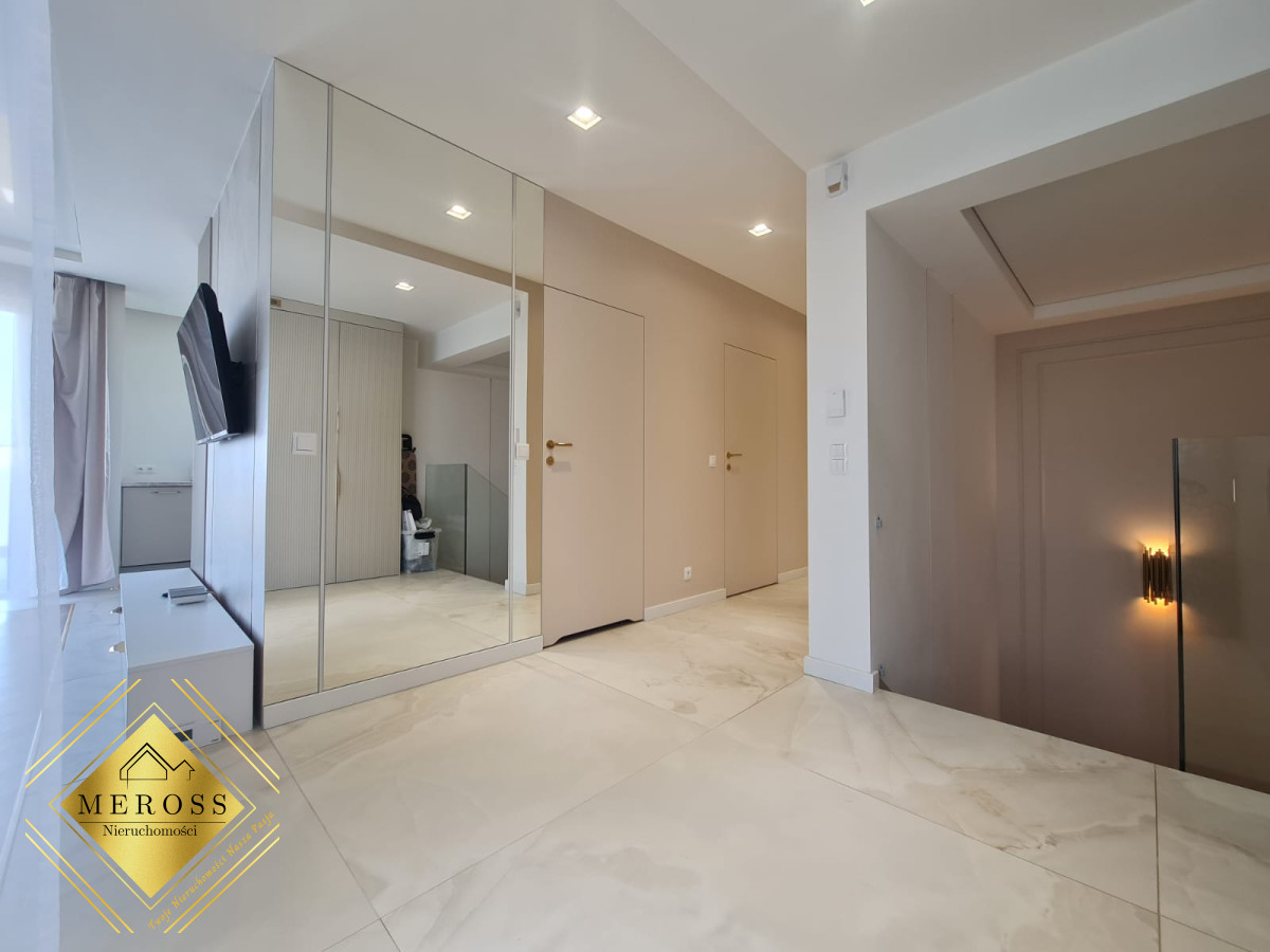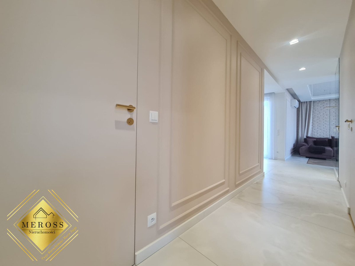 Składa się z przestronnego salonu z aneksem kuchennym, dwóch ustawnych sypialni (w tym jedna bardzo duża), garderoby, dwóch łazienek oraz przedpokoju, schowka, klatki schodowej. W mieszkaniu ogrzewanie podłogowe oraz klimatyzacja. Okna posiadają żaluzje zewnętrzne sterowane automatycznie. Mieszkanie posiada duży taras. Osiedle zamknięte i monitorowane.